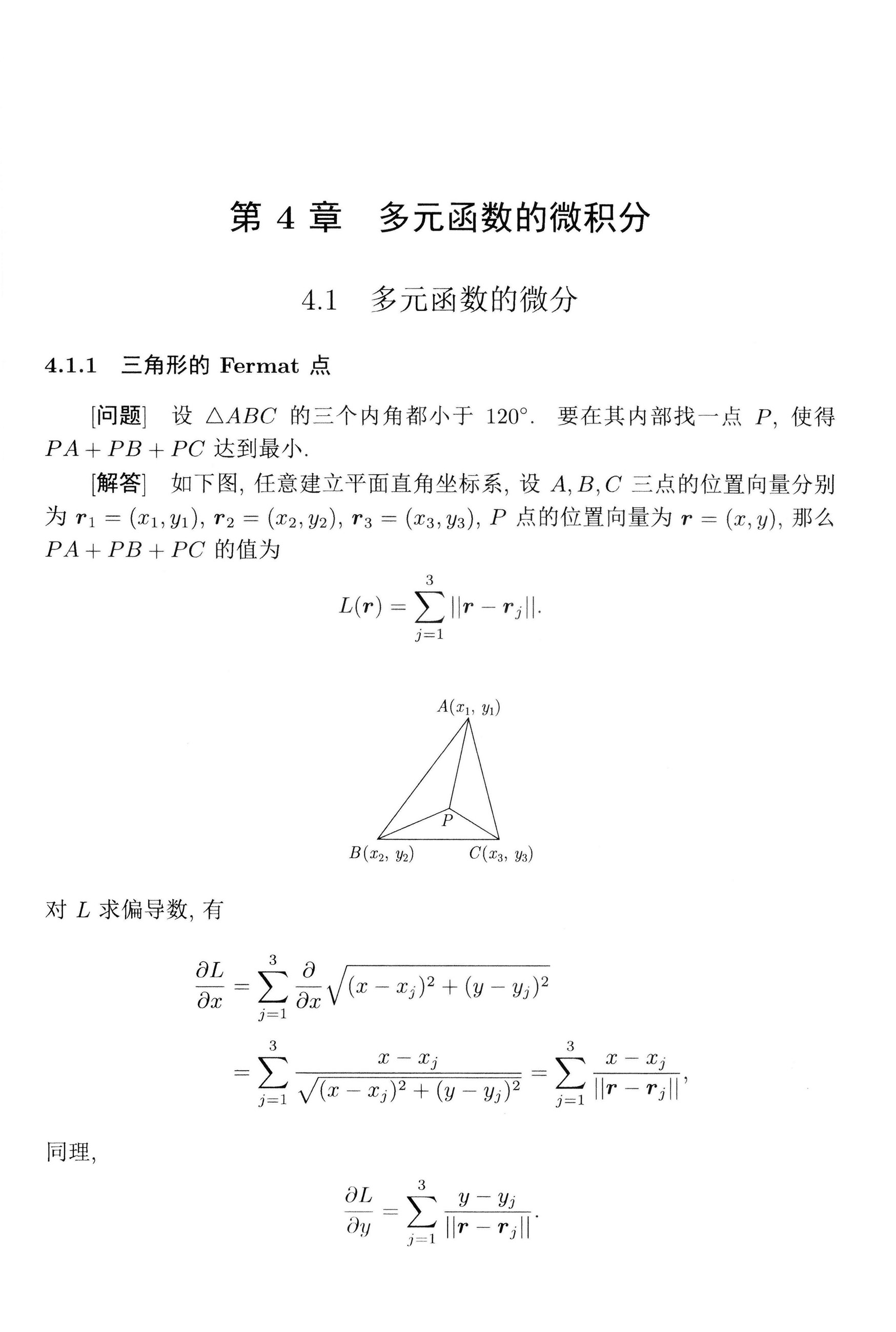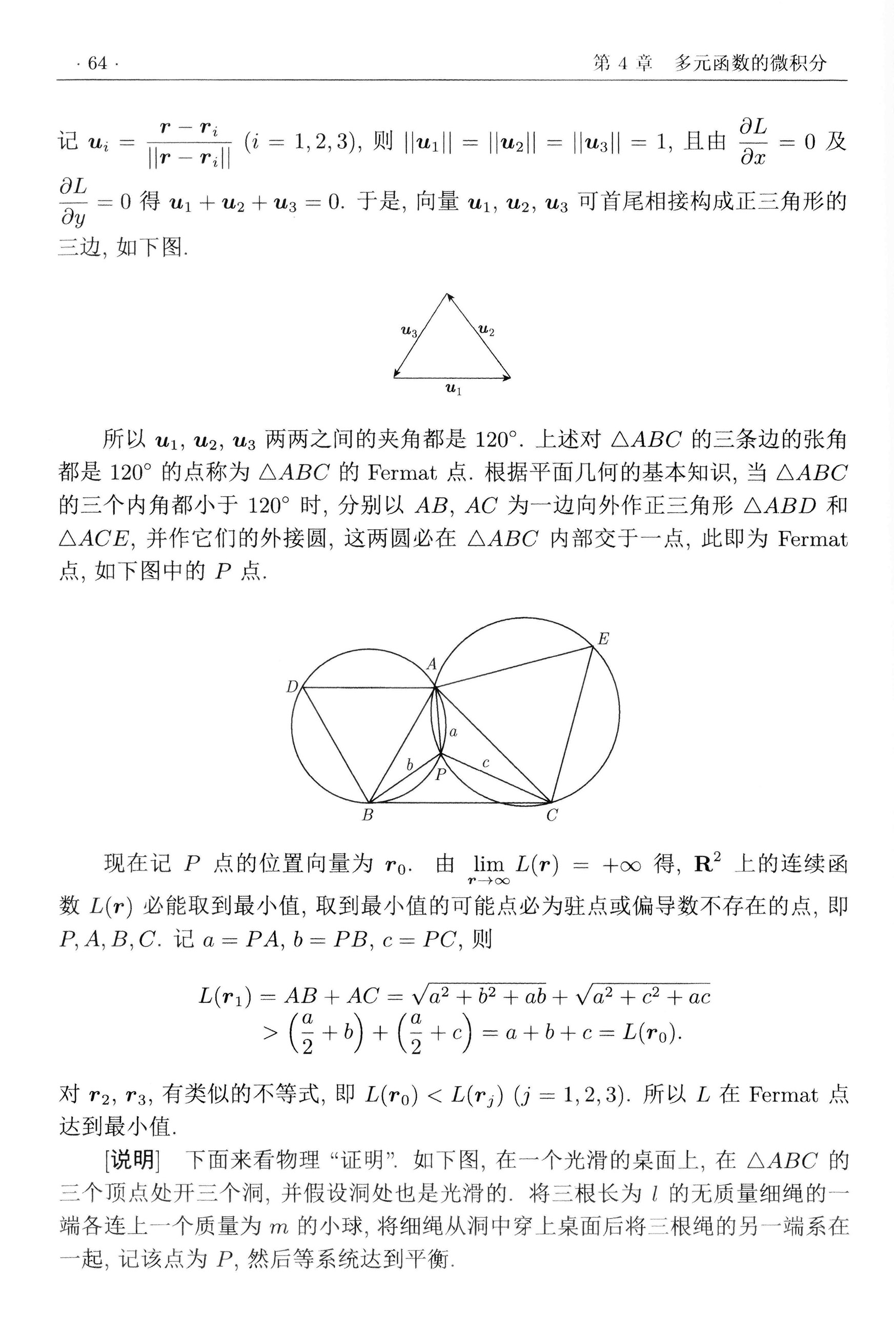 抛体的最远距离, Wien 位移定律, 光的折射与 Fermat 原理, 蜂巢的边界, 实系数一元三次方程的实根个数, Young 不等式、Holder 不等式和 Minkowski 不等式, Lagrange 点